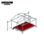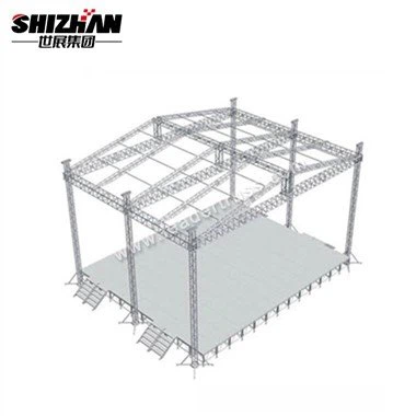 Aluminum stage truss roof is also called aluminum stage roof truss system,the structure was made by aluminum stage,aluminum truss,led lights,sound speakers and led wall.Aluminum stage truss roof usually used for outdoor events ,with the top cover it can also used in the rainy season.